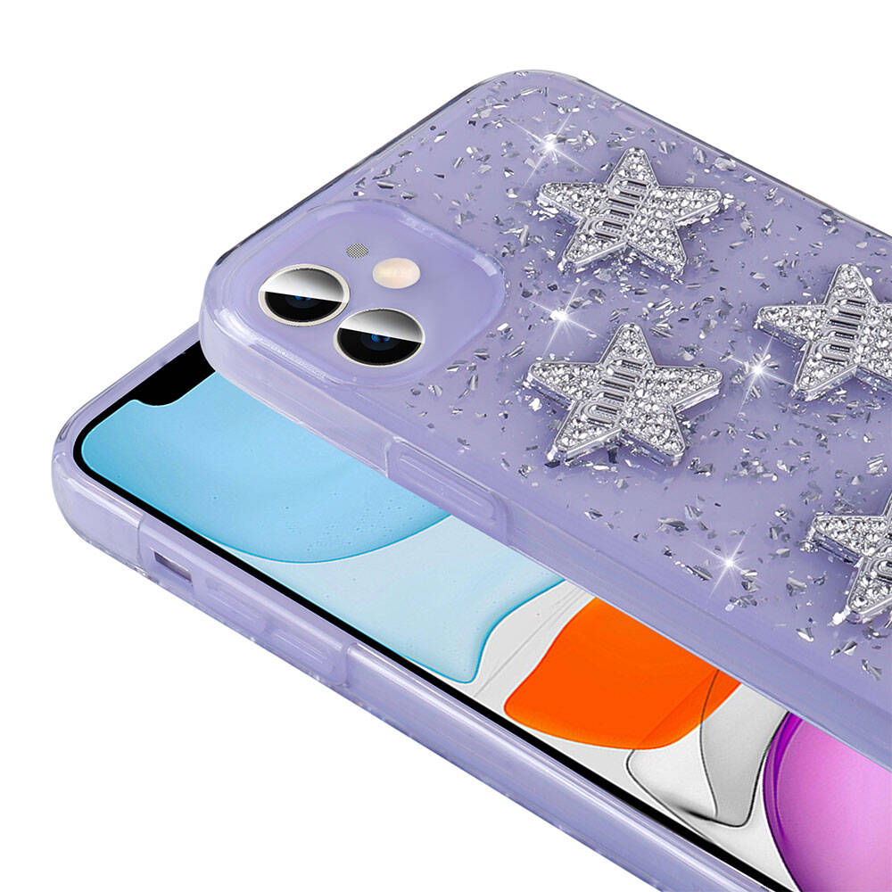 Apple iPhone 11 Kılıf Airbagli Simli Arka Yüzey Zore Işıltı Silikon Kapak Lila
