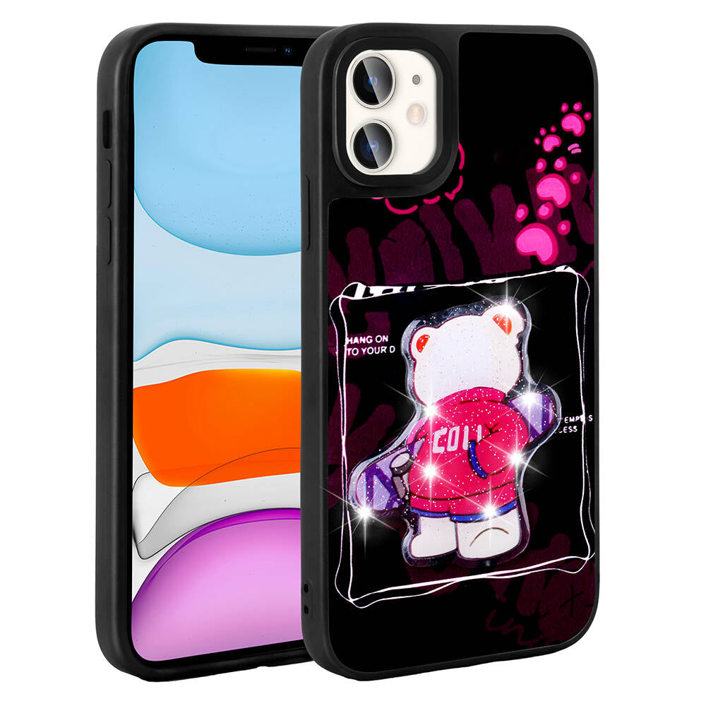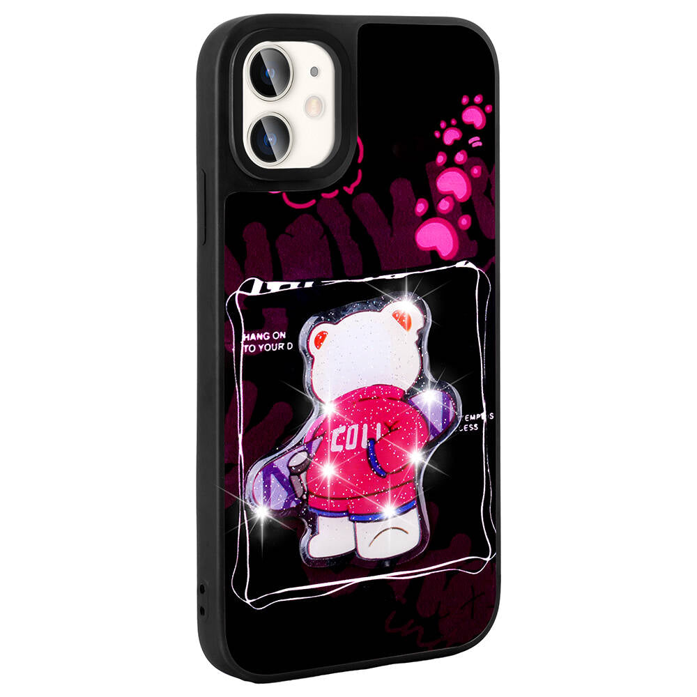 Apple iPhone 11 Kılıf Parlayan Kabartmalı İkonik Figürlü Zore Amas Silikon Kapak Siyah