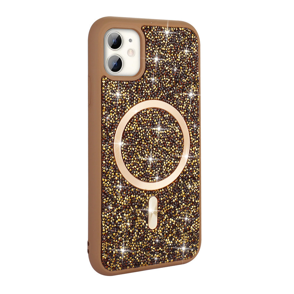 Apple iPhone 11 Kılıf Pırlanta Tasarımlı M-safe Şarj Özellikli Zore Mozaik Silikon Kapak Desert Titanyum