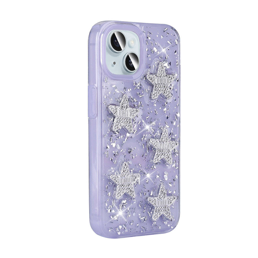 Apple iPhone 13 Kılıf Airbagli Simli Arka Yüzey Zore Işıltı Silikon Kapak Beyaz-Yıldız