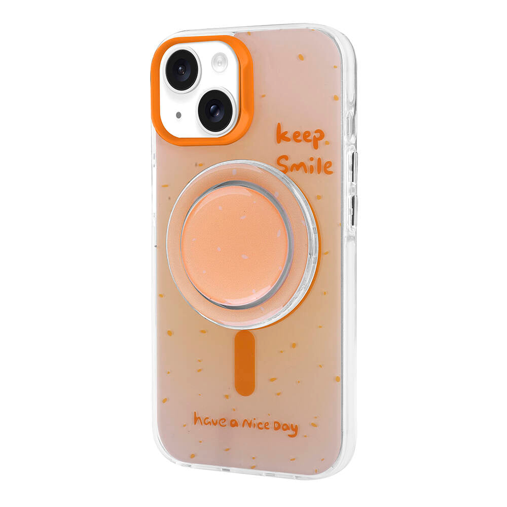 Apple iPhone 13 Kılıf M-safe Şarj Özellikli Tak-Çıkar Pop Soketli Zore Tiktok Kapak Turuncu
