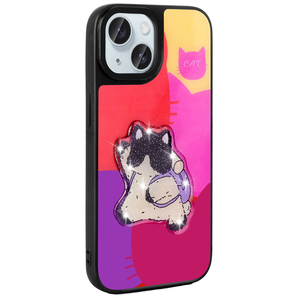 Apple iPhone 13 Kılıf Parlayan Kabartmalı İkonik Figürlü Zore Amas Silikon Kapak Siyah