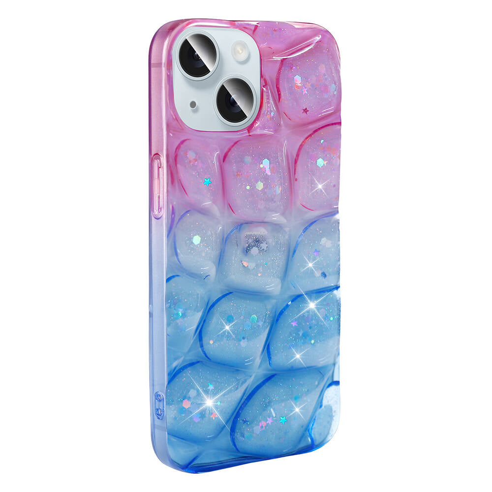 Apple iPhone 13 Kılıf Simli 3D Desenli Zore Hacar Kapak Pembe-Mavi