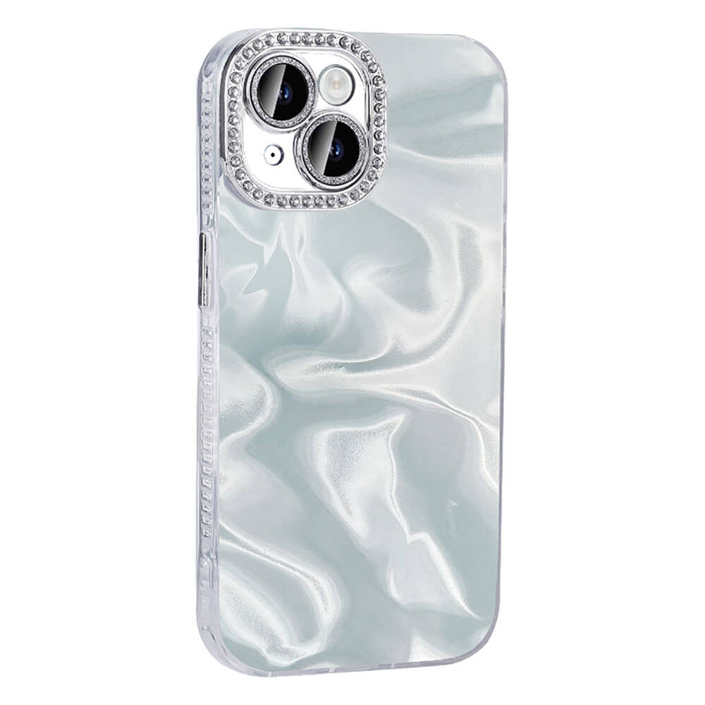Apple iPhone 14 Kılıf Airbagli Parlak Taş Detay Tasarımlı Zore Esila Kapak Beyaz