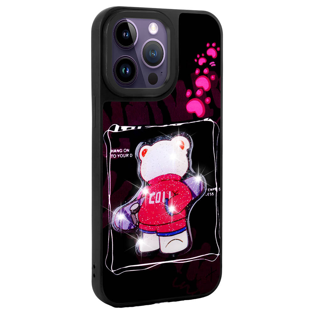 Apple iPhone 14 Pro Kılıf Parlayan Kabartmalı İkonik Figürlü Zore Amas Silikon Kapak Pembe
