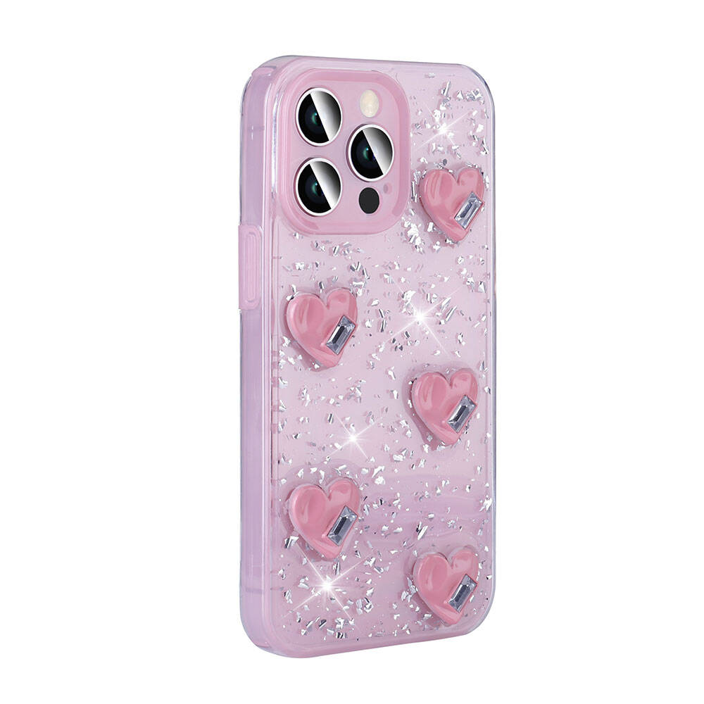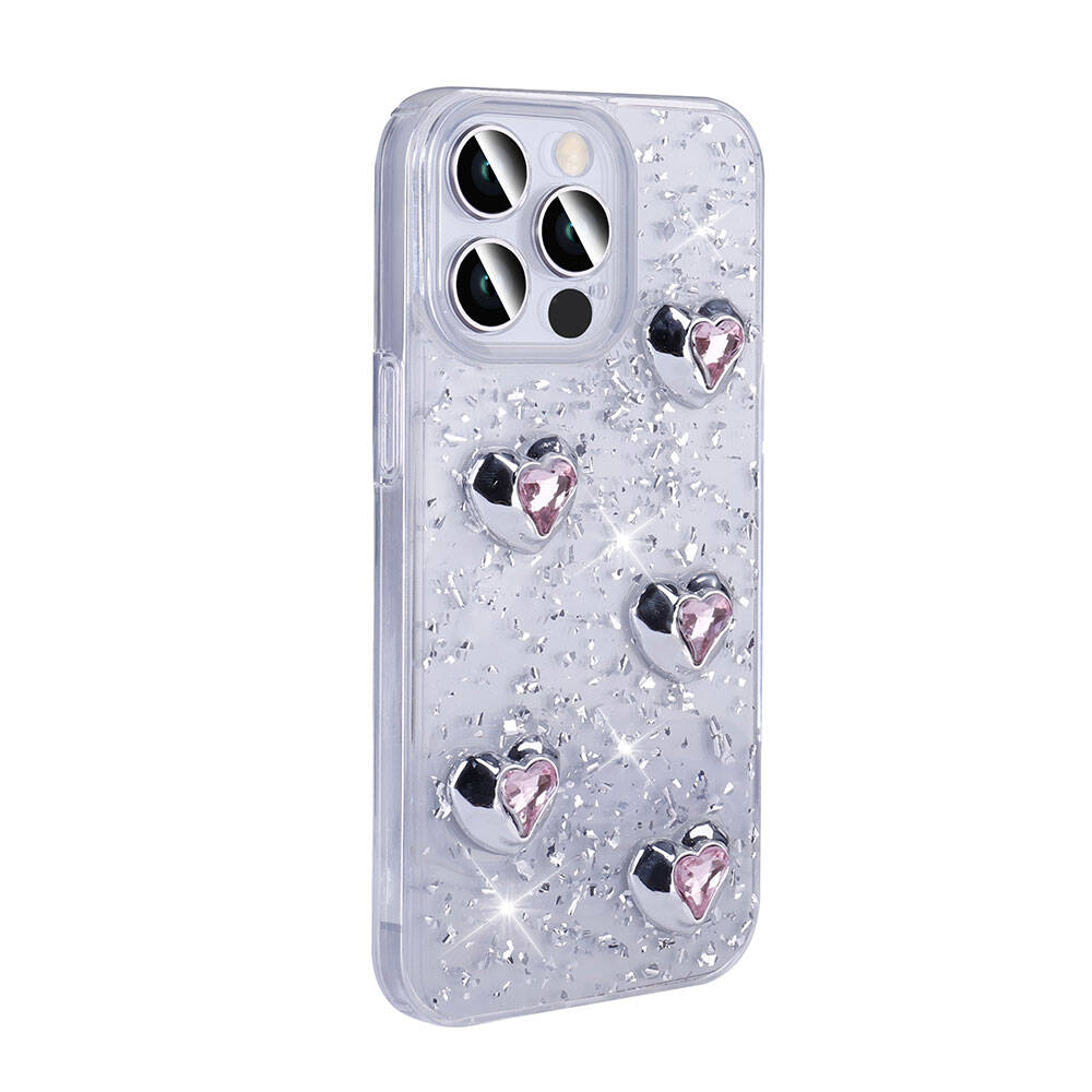 Apple iPhone 14 Pro Max Kılıf Airbagli Simli Arka Yüzey Zore Işıltı Silikon Kapak Beyaz-Kalp