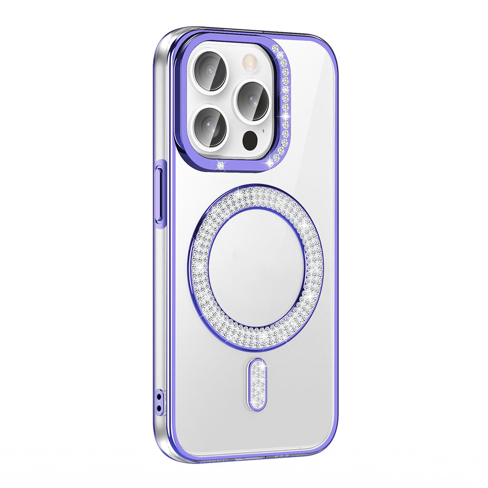 Apple iPhone 14 Pro Max Kılıf Pırlanta Taş Tasarımlı M-safe Şarj Özellikli Zore Karetta Silikon Kapak Mor