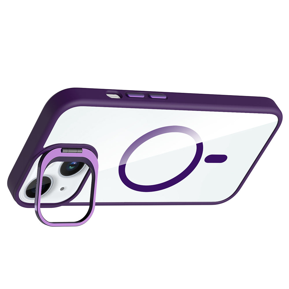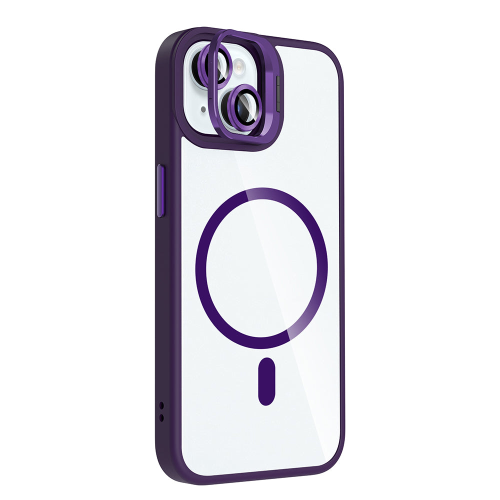 iPhone 15 Kılıf Standlı ve Kamera Lens Hediyeli M-Safe Şarj Özellikli Zore Etro Kapak