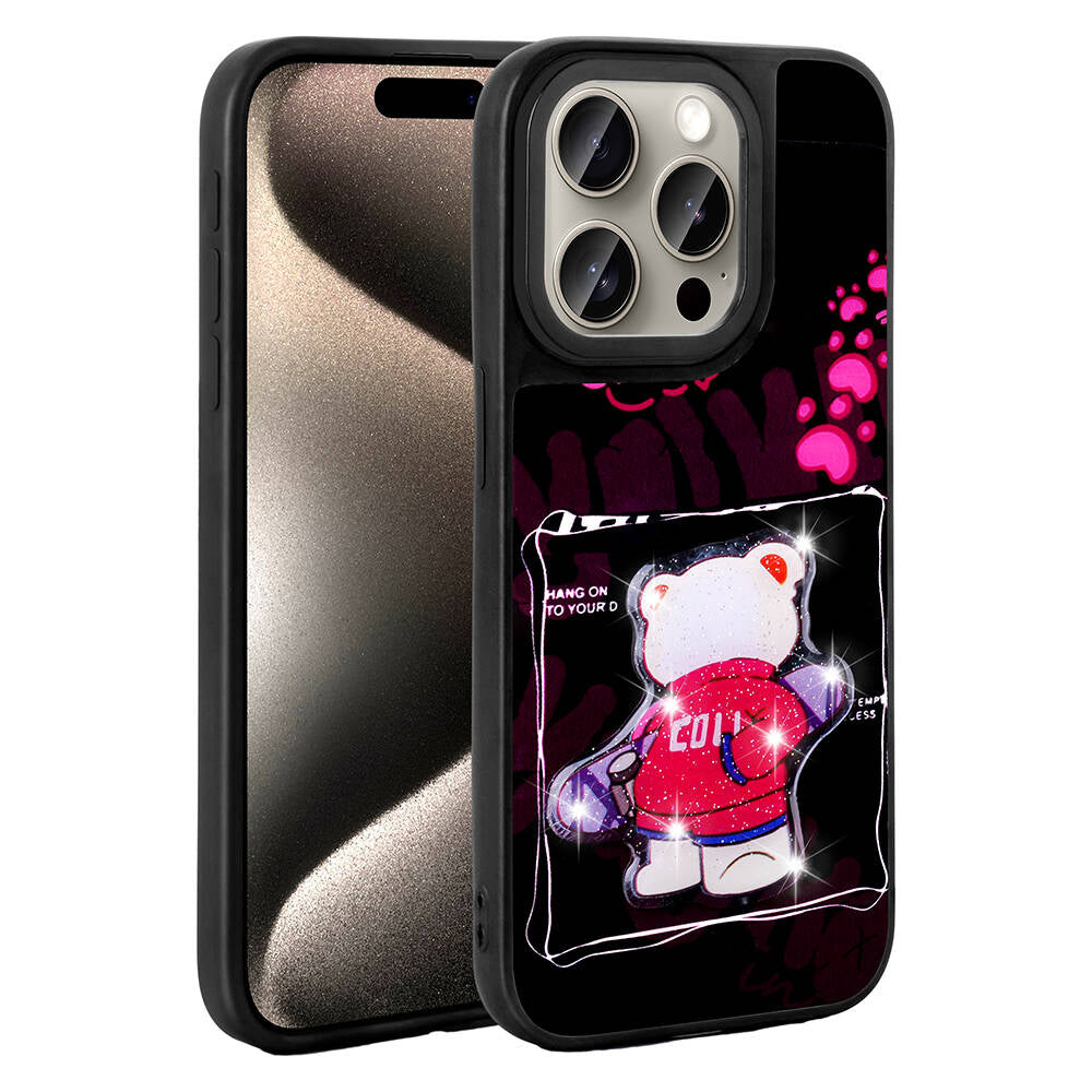 Apple iPhone 15 Pro Kılıf Parlayan Kabartmalı İkonik Figürlü Zore Amas Silikon Kapak Siyah