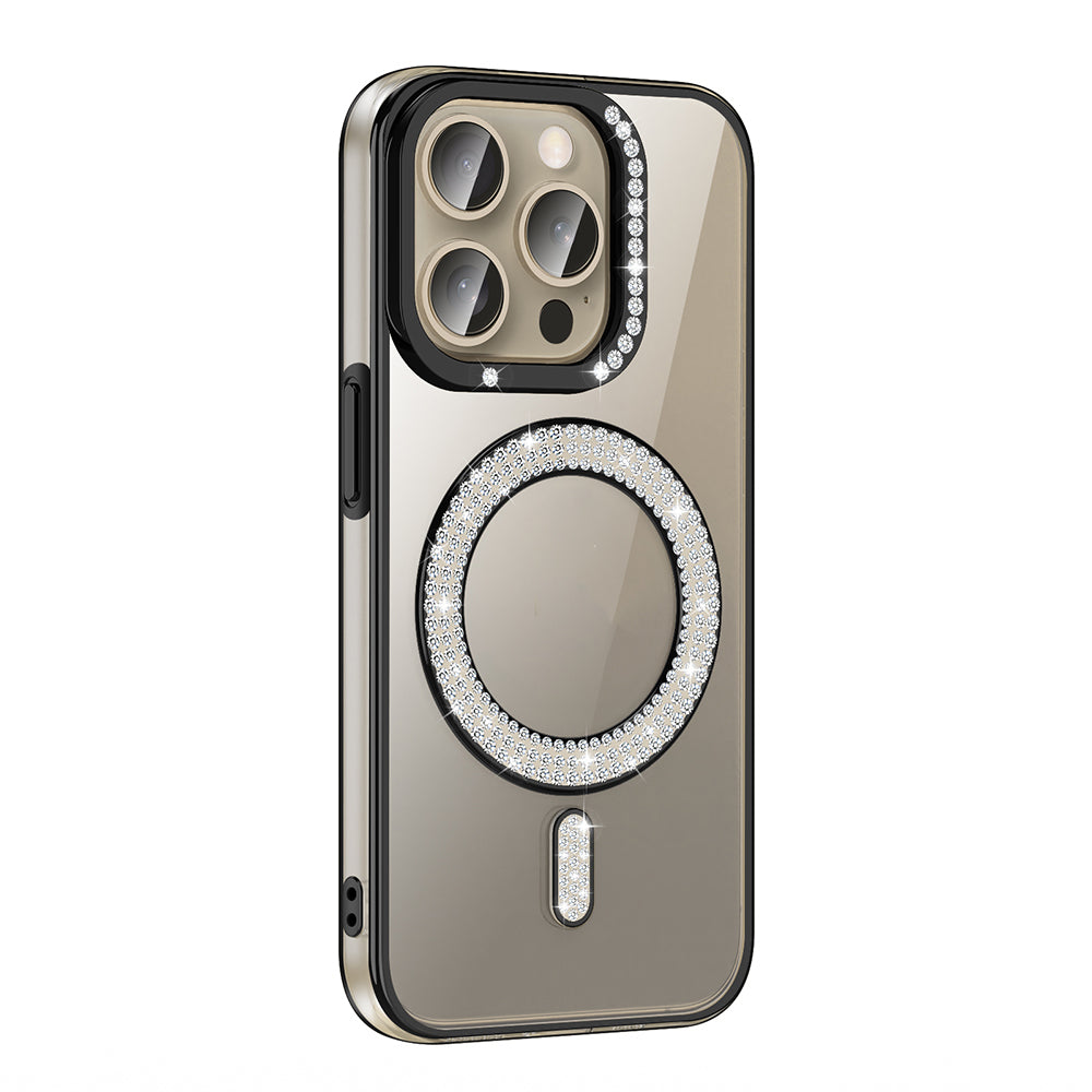Apple iPhone 15 Pro Max Kılıf Pırlanta Taş Tasarımlı M-safe Şarj Özellikli Zore Karetta Silikon Kapak Siyah