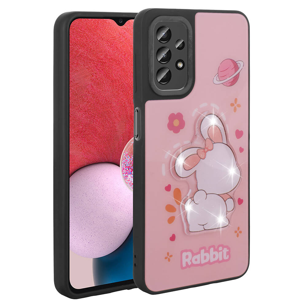 Galaxy A13 4G Kılıf Parlayan Kabartmalı İkonik Figürlü Zore Amas Silikon Kapak Pembe