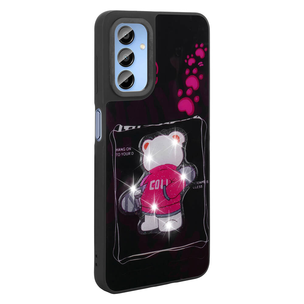Galaxy A15 Kılıf Parlayan Kabartmalı İkonik Figürlü Zore Amas Silikon Kapak Siyah