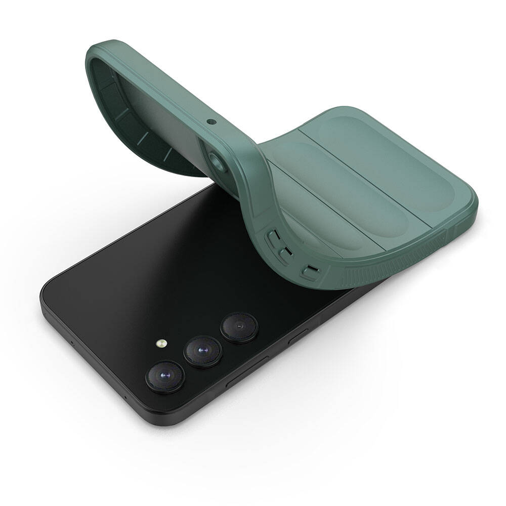 Galaxy A35 Kılıf Esnek TPU Oyuklu Arka Yüzey Tasarımlı Zore Etnik Silikon Kapak Koyu Yeşil