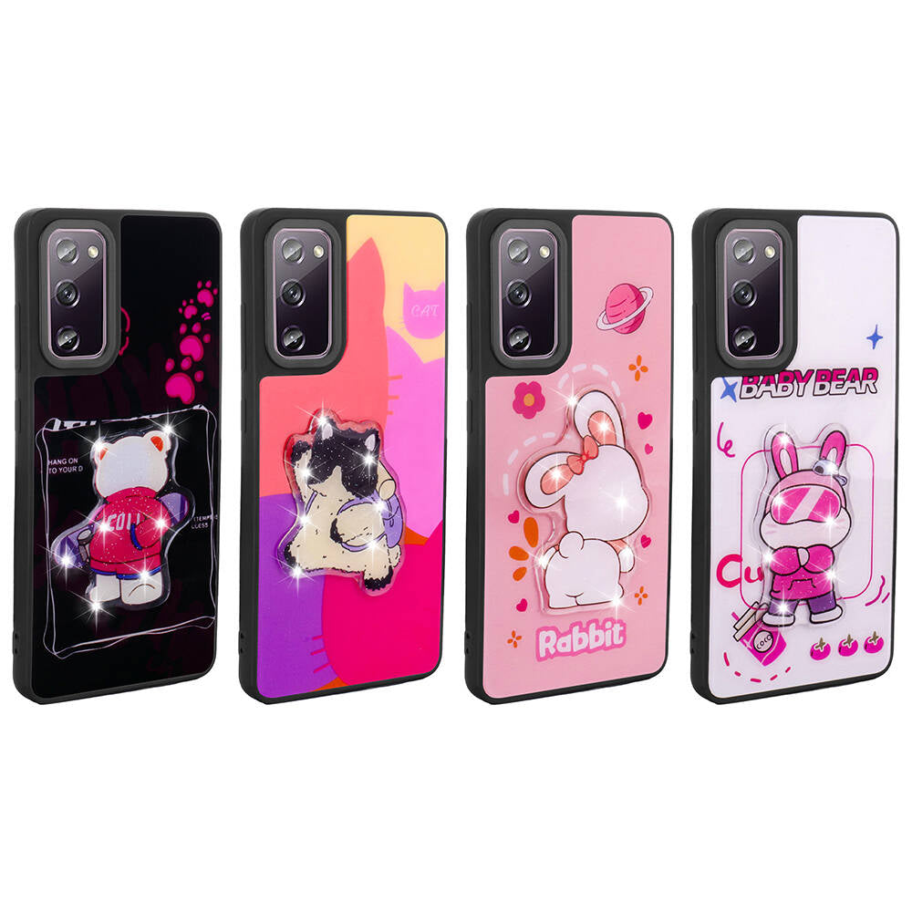 Galaxy S20 FE Kılıf Parlayan Kabartmalı İkonik Figürlü Zore Amas Silikon Kapak Beyaz