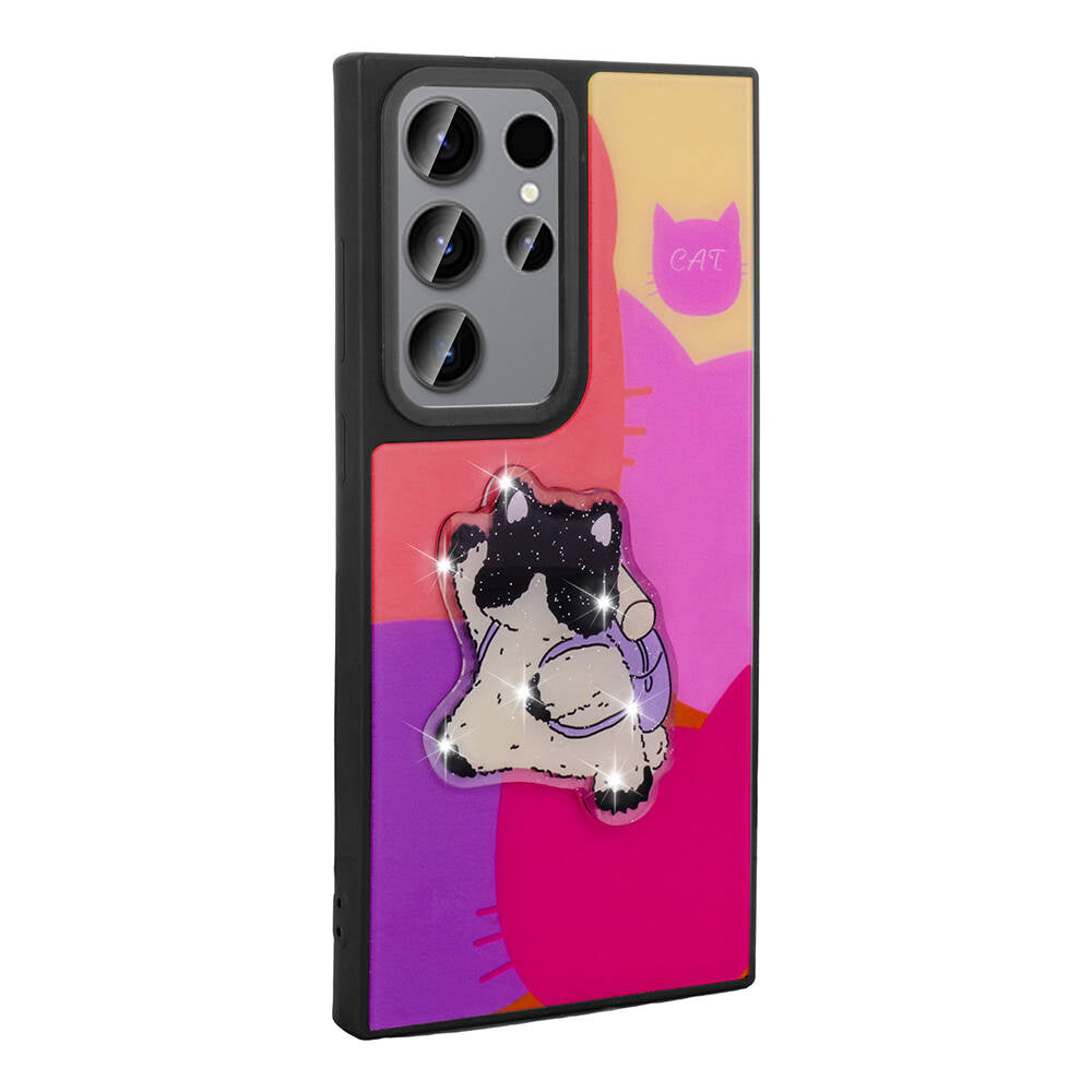 Galaxy S22 Ultra Kılıf Parlayan Kabartmalı İkonik Figürlü Zore Amas Silikon Kapak Pembe