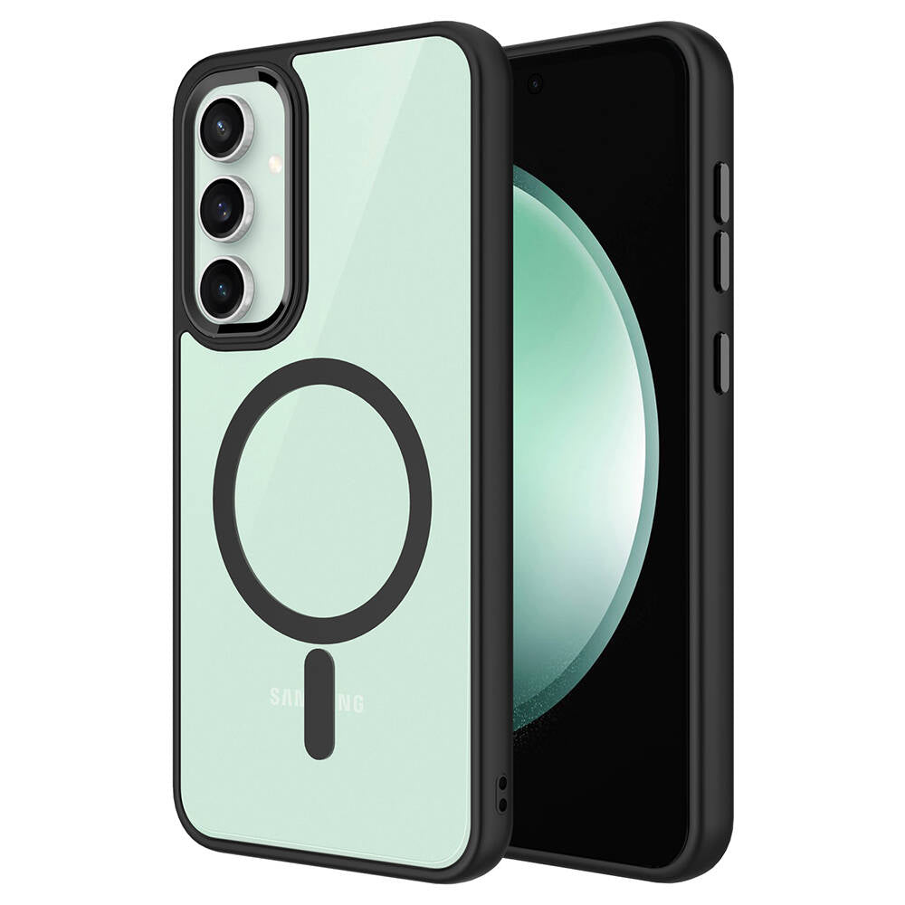 Galaxy S23 FE Kılıf Wireless Şarj Özellikli Zore Krom M-safe Silikon Kapak Siyah