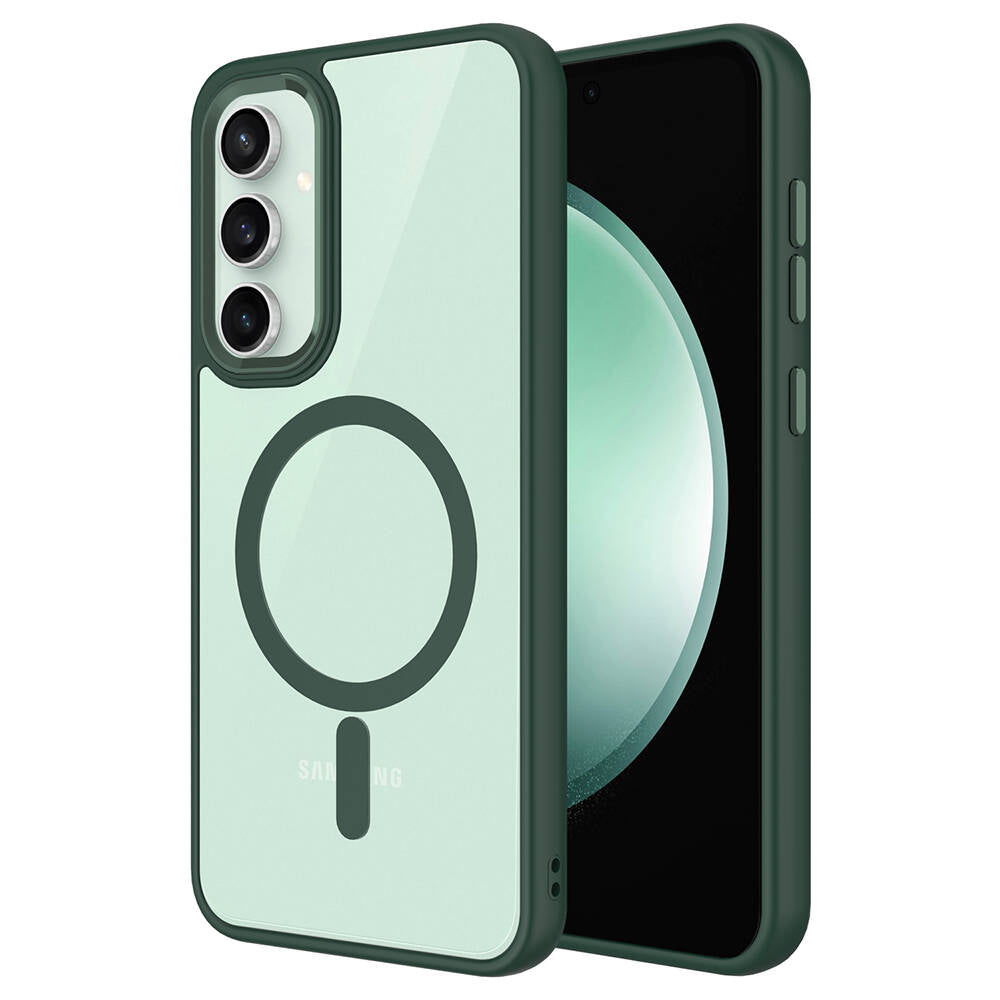 Galaxy S23 FE Kılıf Wireless Şarj Özellikli Zore Krom M-safe Silikon Kapak Koyu Yeşil