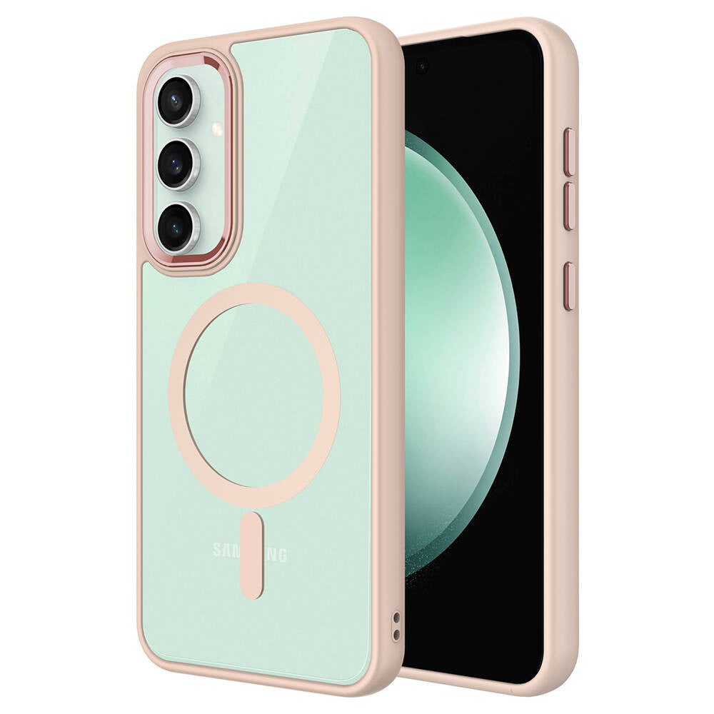 Galaxy S23 FE Kılıf Wireless Şarj Özellikli Zore Krom M-safe Silikon Kapak Pembe Açık