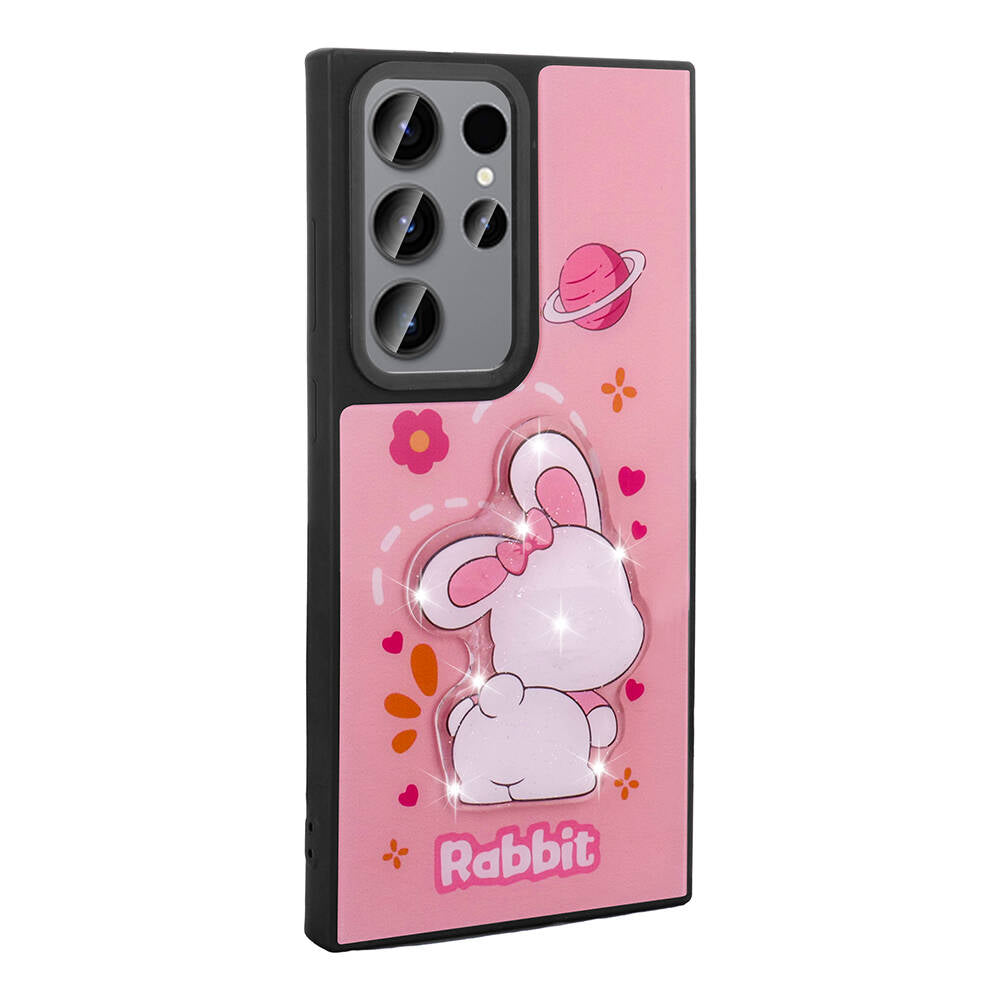 Galaxy S23 Ultra Kılıf Parlayan Kabartmalı İkonik Figürlü Zore Amas Silikon Kapak Pembe