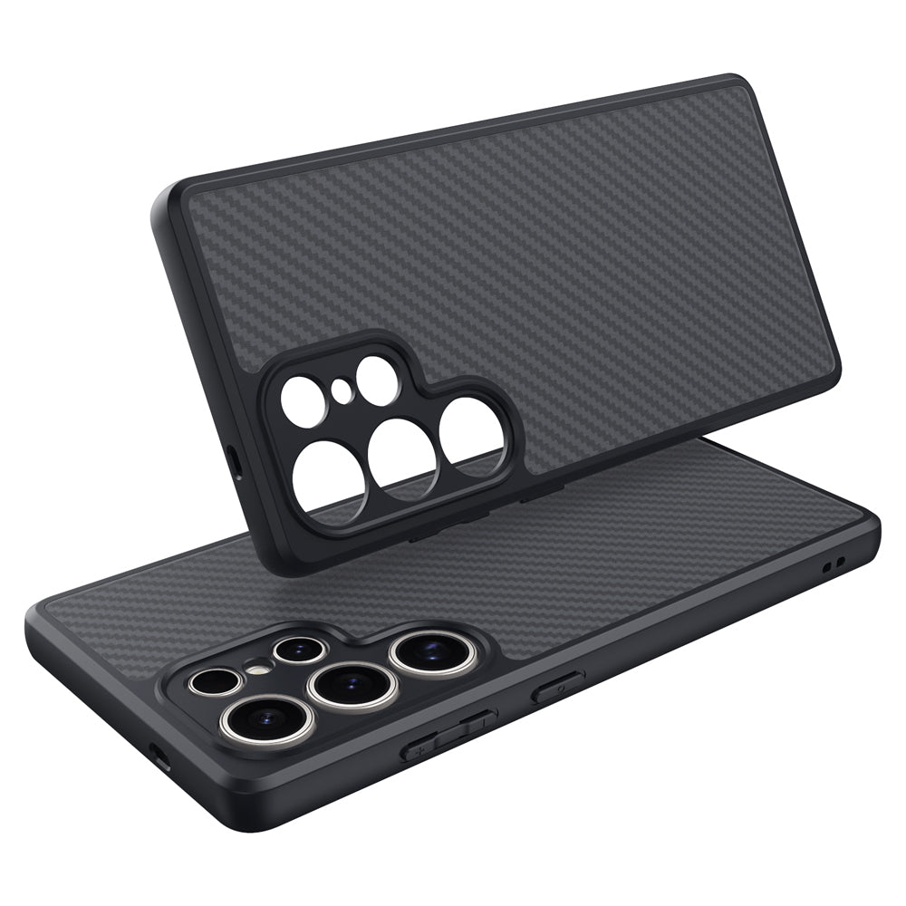 Galaxy S25 Ultra Kılıf M-safe Şarj Özellikli Karbon Fiber Tasarımlı Zore Elnino Kapak Siyah