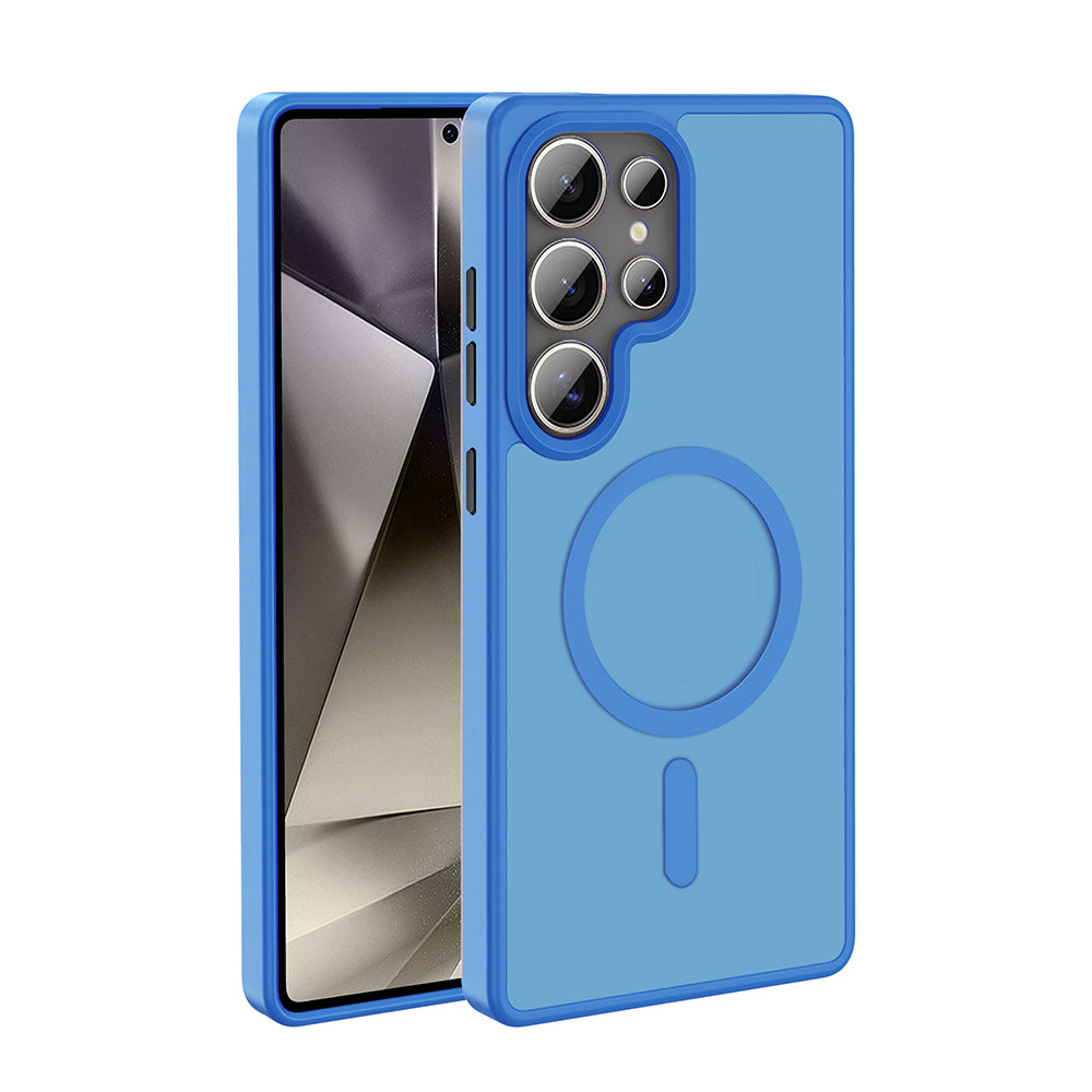 Galaxy S25 Ultra Kılıf M-safe Şarj Özellikli Mat Arka Yüzey Zore Sio Kapak Mavi