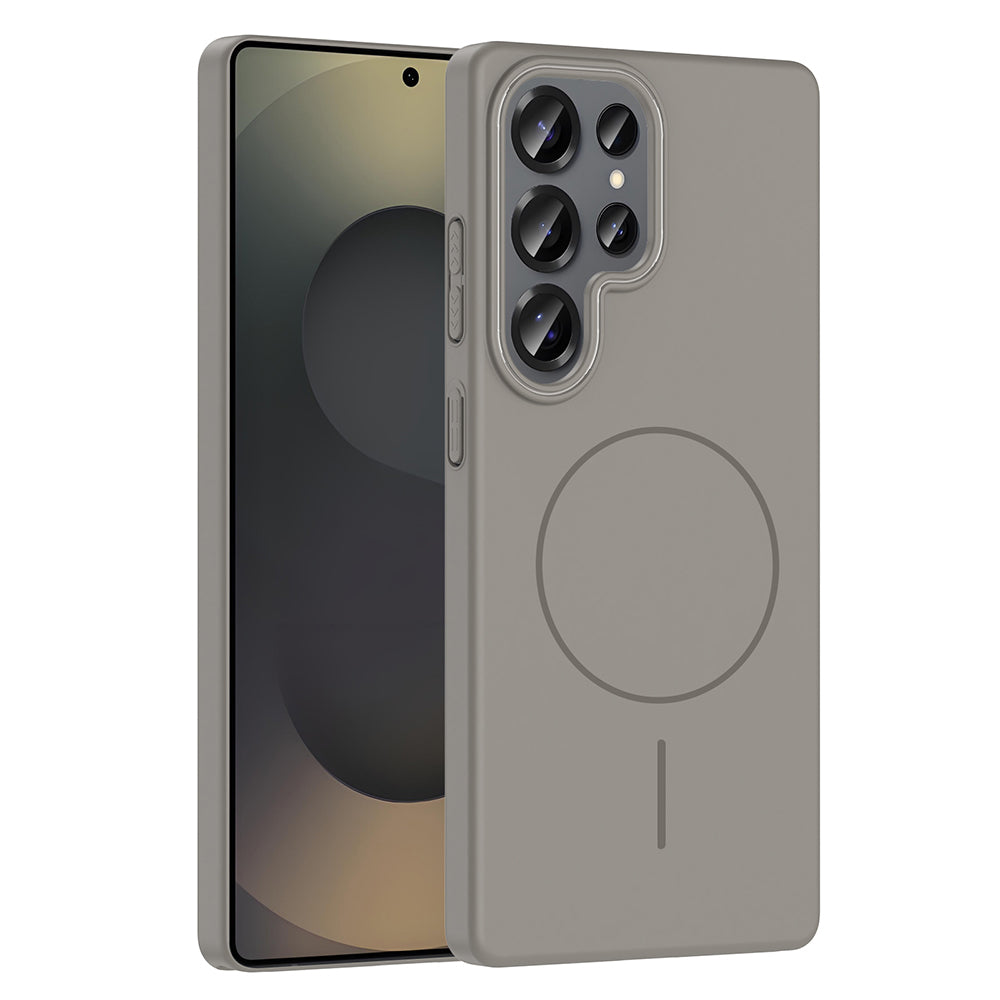 Galaxy S25 Ultra Kılıf M-safe Şarj Özellikli Zore Ruby Sert Kapak Gri