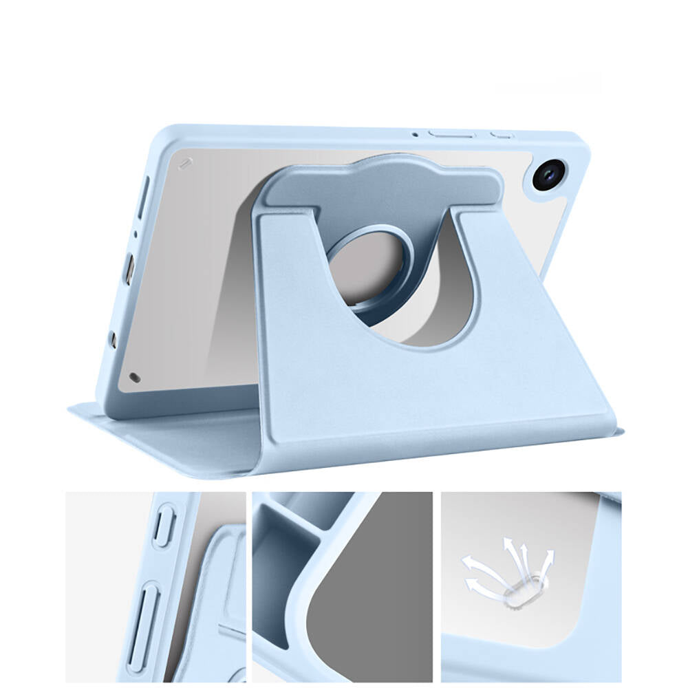 Galaxy Tab A9 Plus Kılıf Zore Termik Kalem Bölmeli Dönebilen Standlı Kılıf Mavi