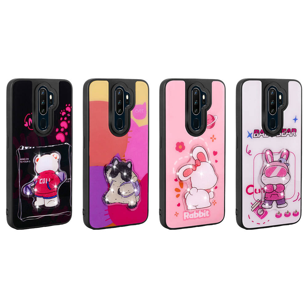 Oppo A9 2020 Kılıf Parlayan Kabartmalı İkonik Figürlü Zore Amas Silikon Kapak Beyaz