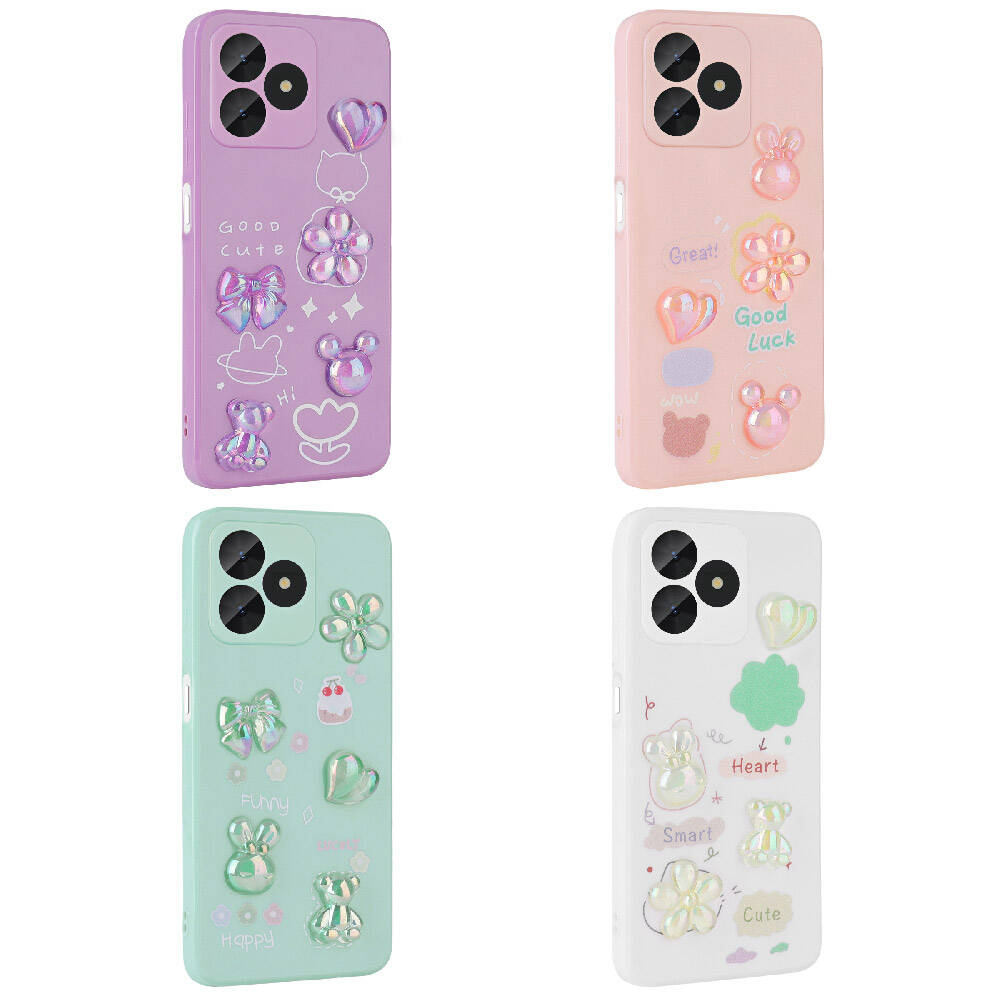 Realme C53 Kılıf Kabartma Figürlü Parlak Zore Toys Silikon Kapak Pembe