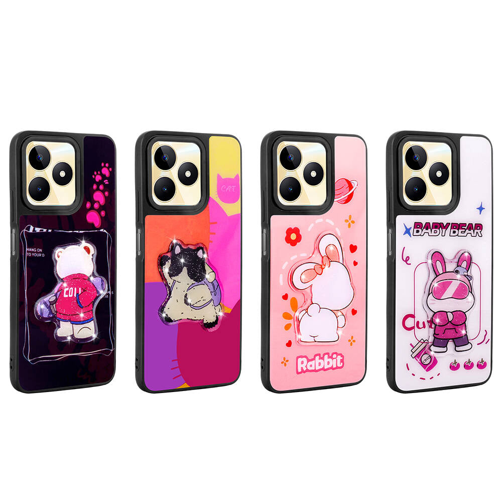 Realme C53 Kılıf Parlayan Kabartmalı İkonik Figürlü Zore Amas Silikon Kapak Siyah