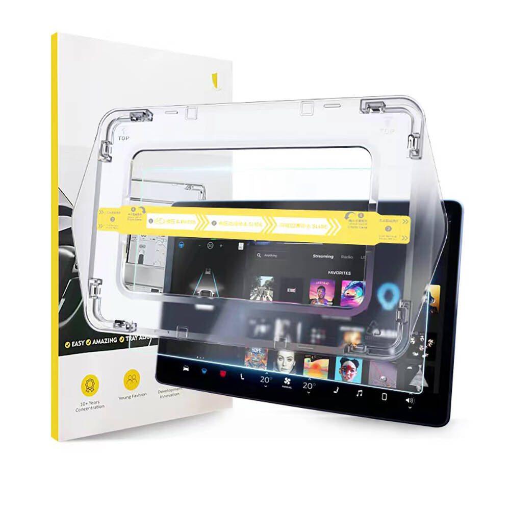 Tesla Model S Araç Multimedya Ekran Koruyucu AR Oleofobik Uygulama Aparatlı Zore Premium Temperli Cam Ekran Koruyucu