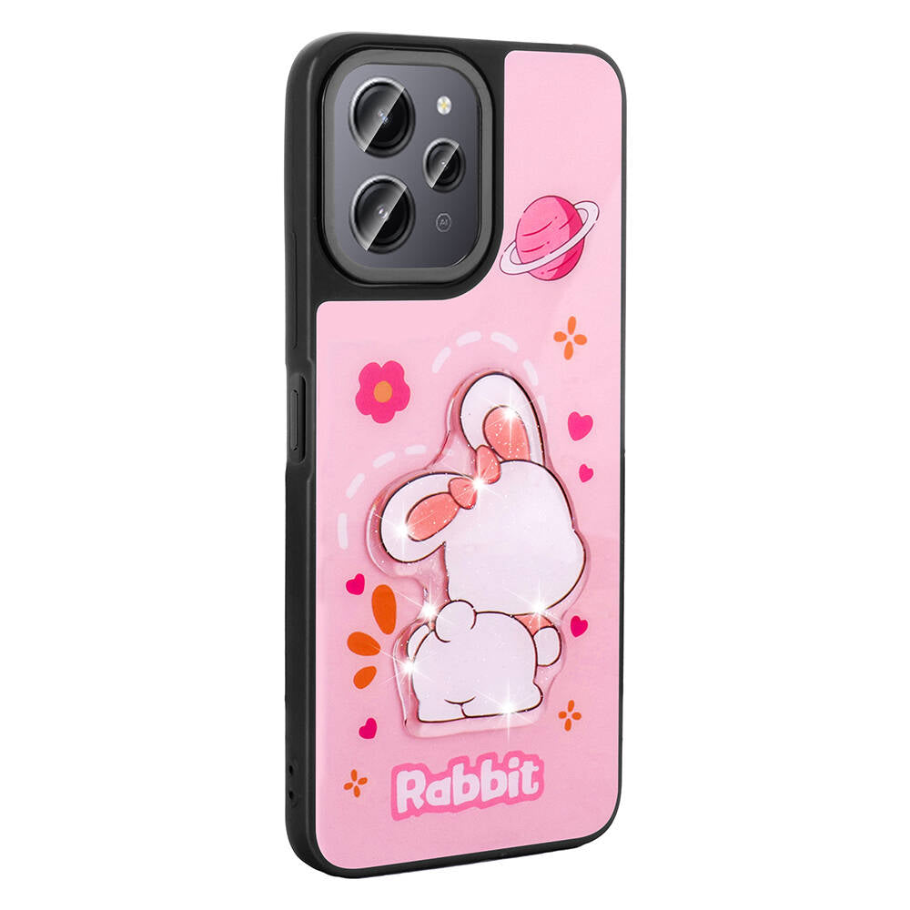 Xiaomi Redmi 12 4G Kılıf Parlayan Kabartmalı İkonik Figürlü Zore Amas Silikon Kapak Siyah