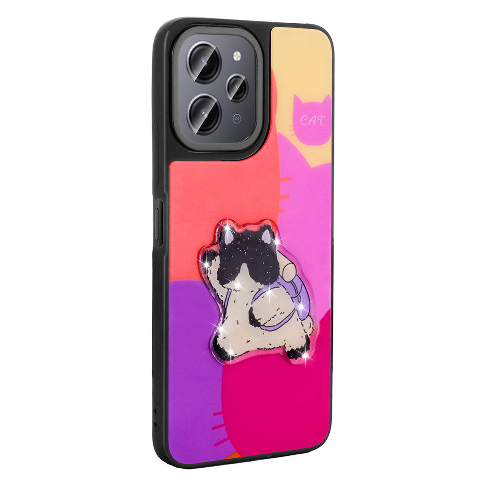 Xiaomi Redmi 12 4G Kılıf Parlayan Kabartmalı İkonik Figürlü Zore Amas Silikon Kapak Mor