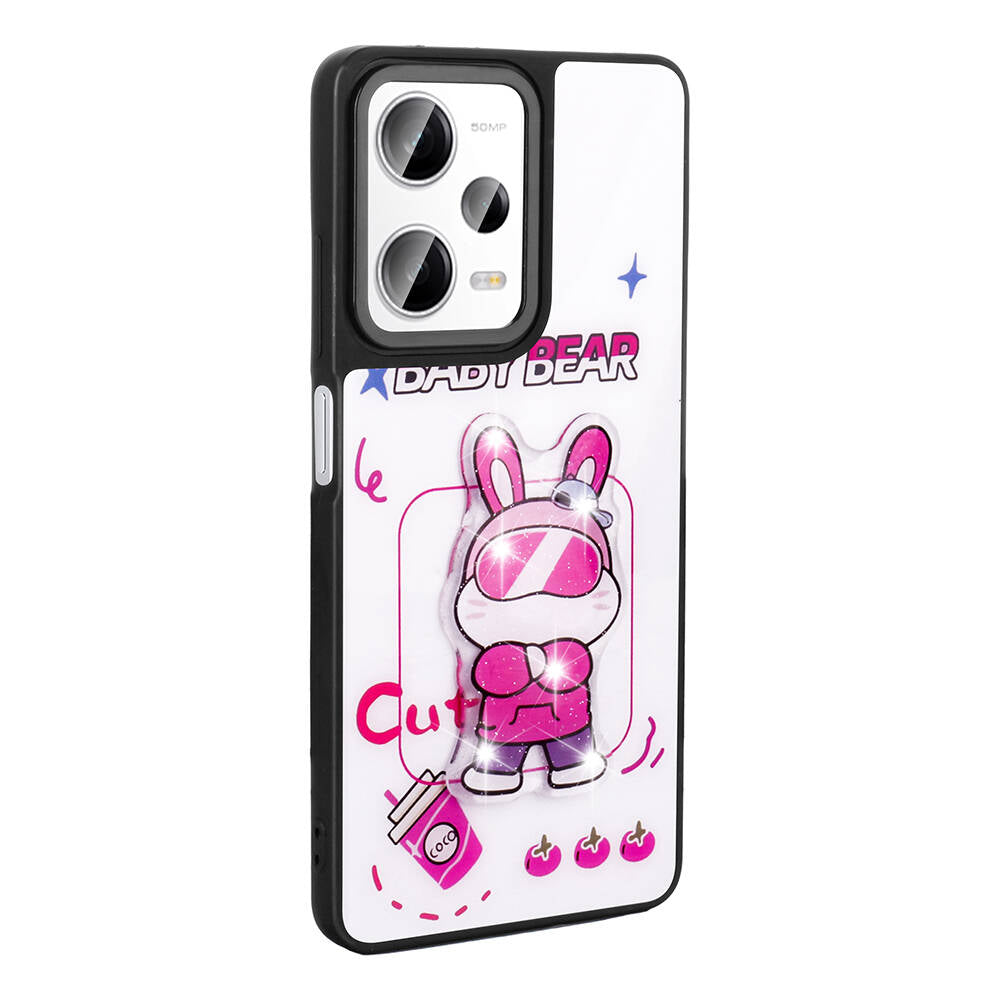 Xiaomi Redmi Note 12 Pro Plus 5G Kılıf Parlayan Kabartmalı İkonik Figürlü Zore Amas Silikon Kapak Mor