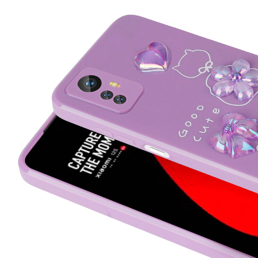 Xiaomi Redmi Note 12S Kılıf Kabartma Figürlü Parlak Zore Toys Silikon Kapak Mor