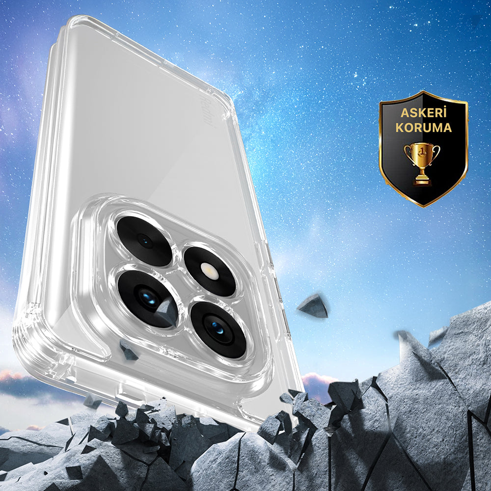 Xiaomi Redmi Note 14 Pro 5G Kılıf Airbagli Takılabilir Askı Aparatlı Zore Snap Silikon Kapak Şeffaf
